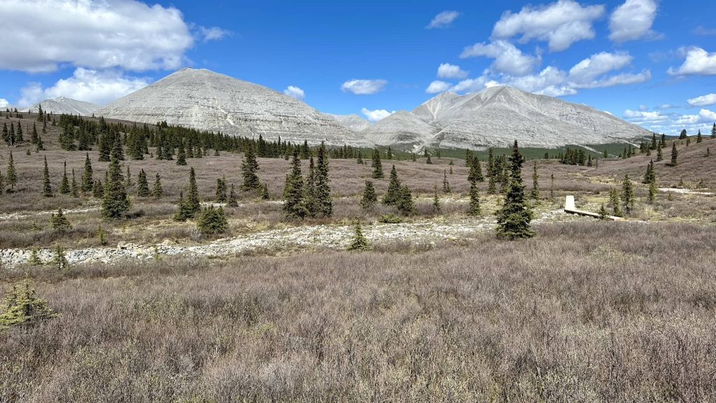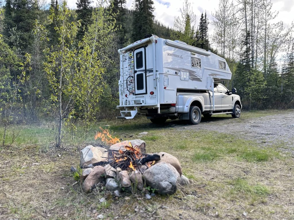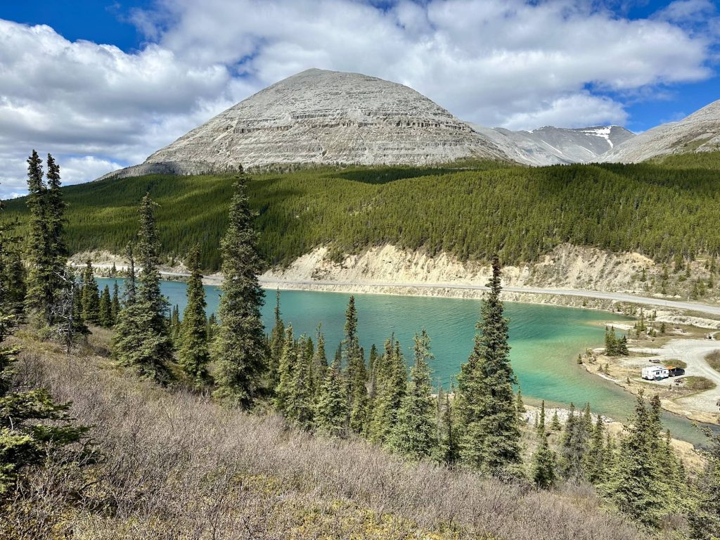 Flower Springs Lake trail位于Stone Mountain Provincial Park,在Alcan Highway上算是个小众景点。Trail的起始点就是一个湖边宿营地,一共四辆宿营车。理所当然我们走了两个多小时连一个人都没见到。