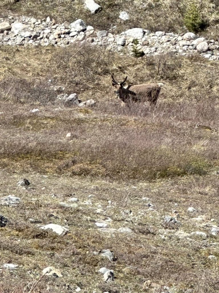 公路两边几乎都是原始森林,自然有野生动物出没,眼神给力就能捕捉到它们的身影。我们头几天见到了三头熊,一头驯鹿和一只刺猬。