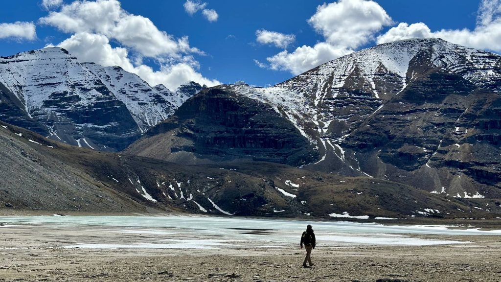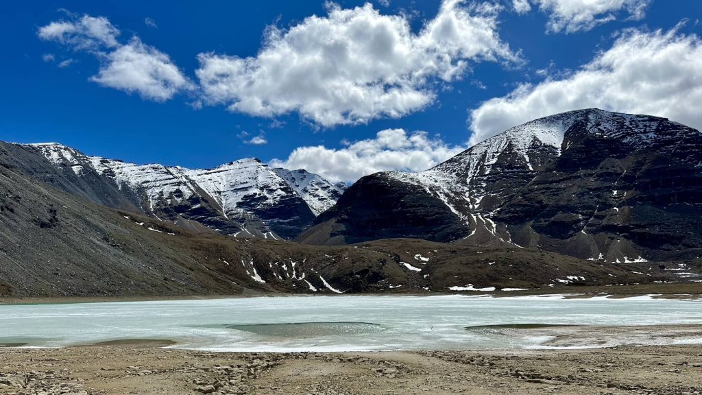 这就是trail的尽头“春花湖”,可能是今年水量不足,大部分湖面是干涸的,只有一小部分被冰层覆盖。