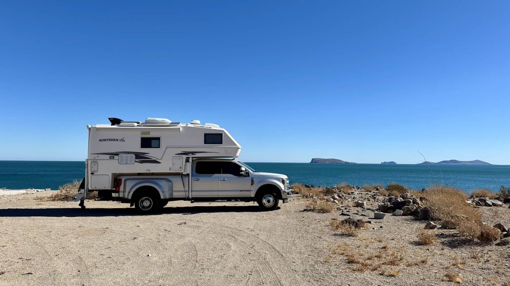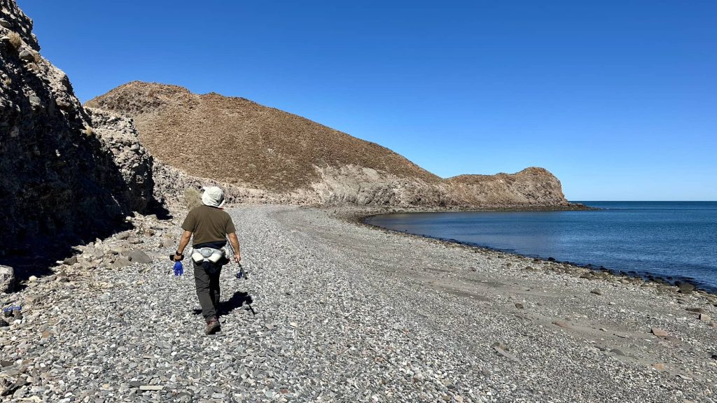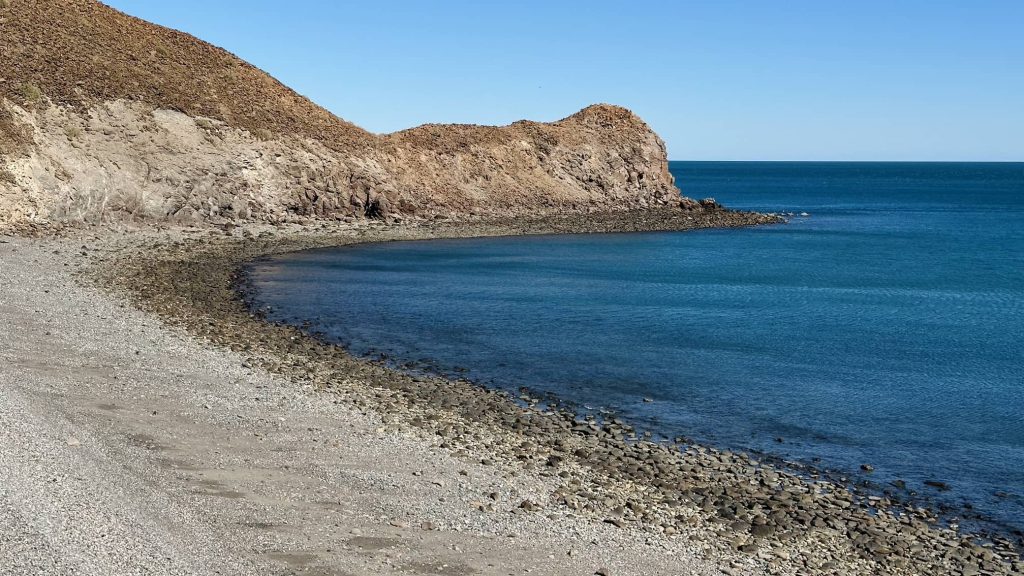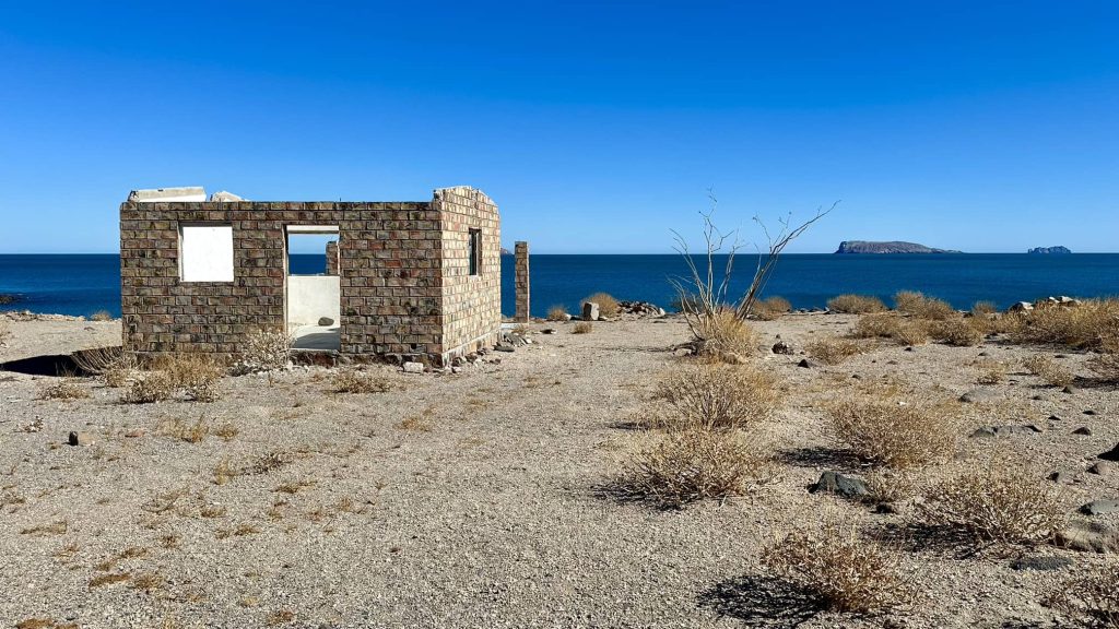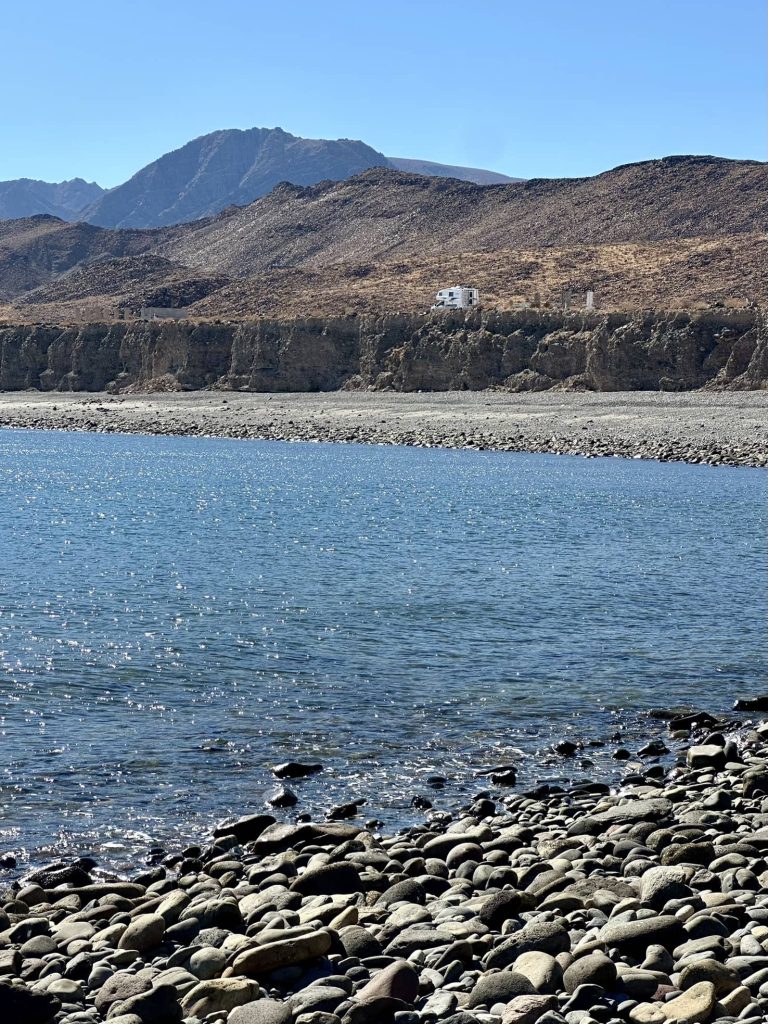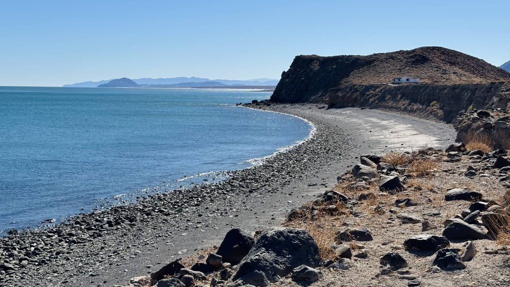 离开了San Felipe,沿着5号公路南下,一路走走停停,傍晚时分来到了一处没有名字的海滩。从5号路转上一条土路,行驶几百米就来到了一片悬崖边的空地。这里的面积大概有十几个足球场大小,宽阔而平整。以前有人试图在这里建造几处房屋,但不知为何又放弃了,只留下了几处地基和建了一半的房子,实在有点可惜。我们在这里住了两天,独自拥有了整个海滩,这么一个无名海滩已经给了我们许多惊喜,我们对下面的旅程充满了期待。这个海滩的经纬度是30°01’24.0″N 114°34’04.0″W。