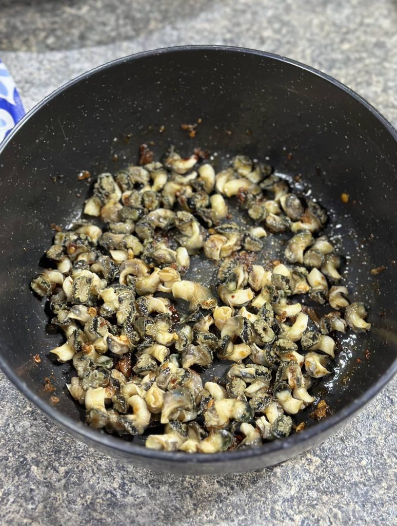 虽然没掉到鱼,但在海边礁石上收获了一兜中号海螺蛳,做了一碗麻辣海螺,绝好下酒小菜。