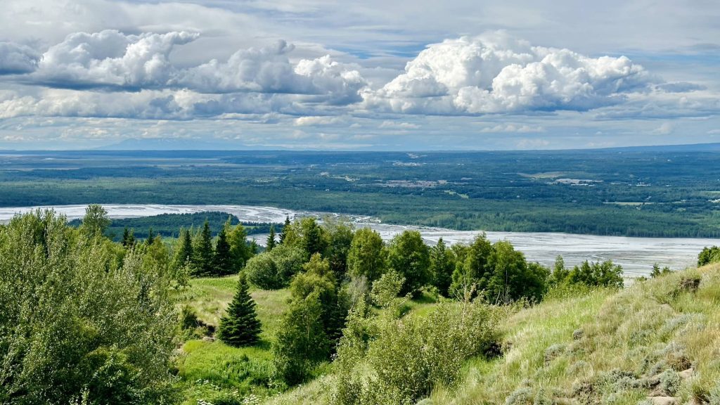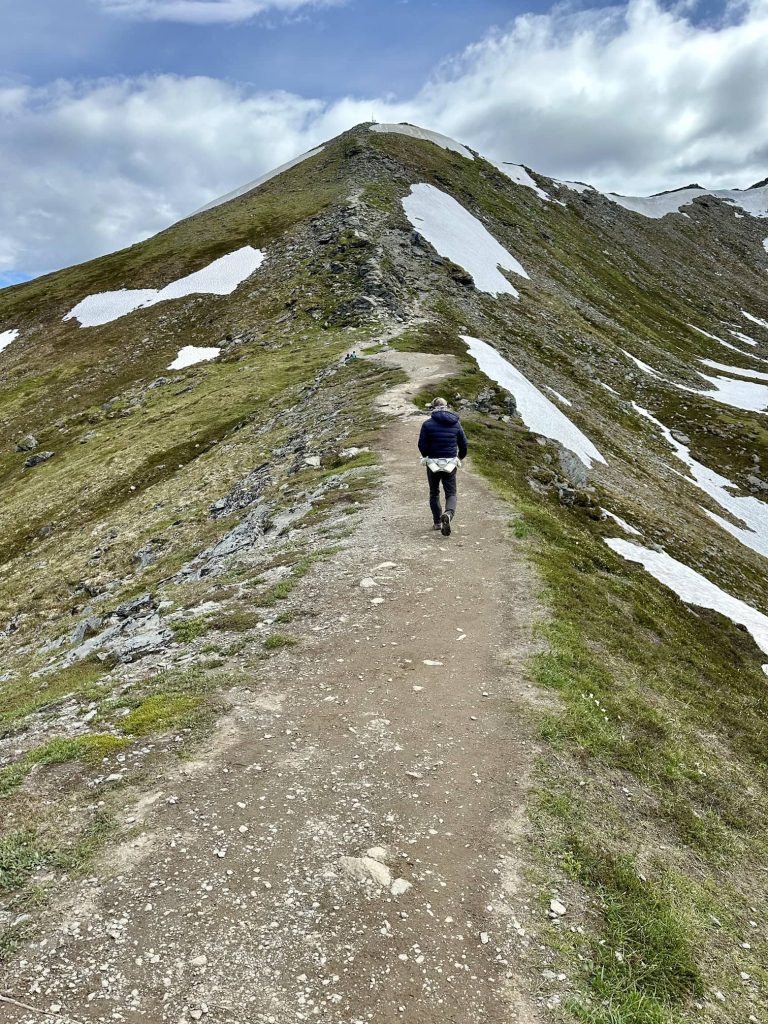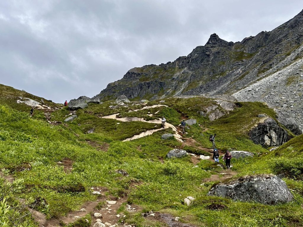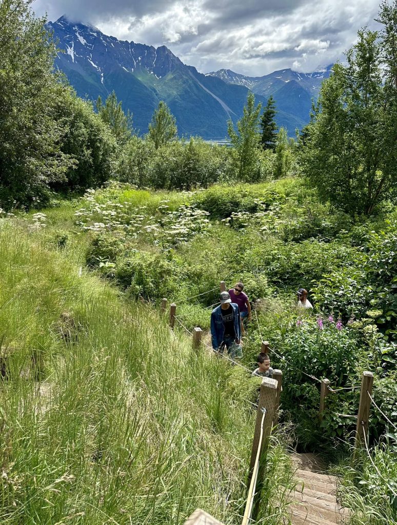 Bodenburg Butte trail全长2.5英里,落差745尺,全部是爬楼梯,没有任何难度,山顶上可以远眺Knik冰川。