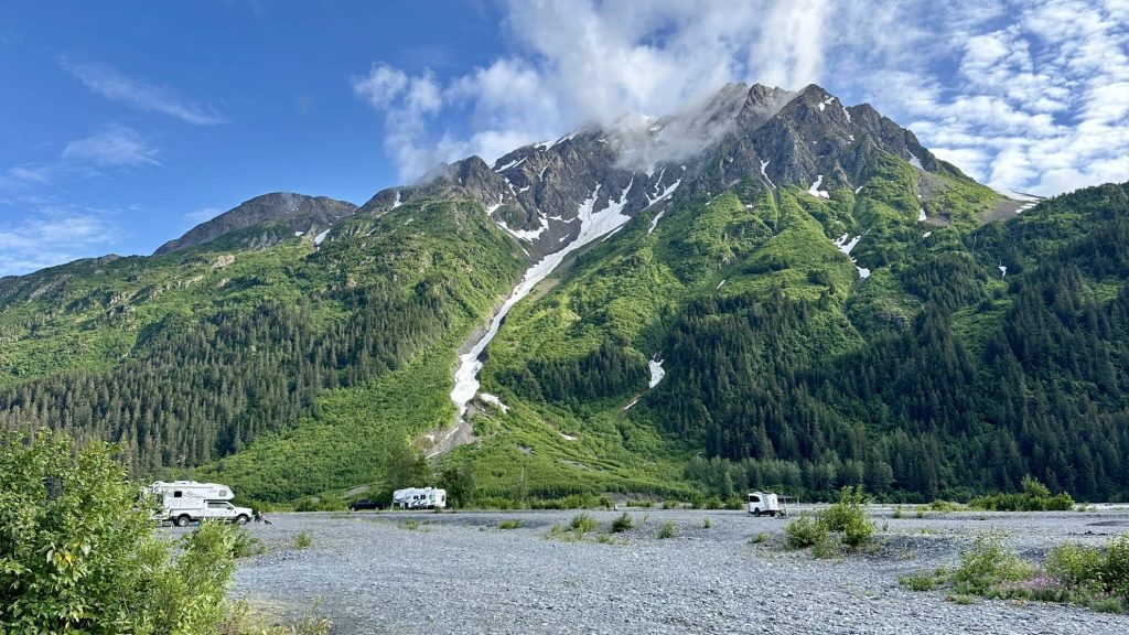 上图是我们住的免费营地,实际上就是一大片平整的鹅卵石河滩,离Exit Glacier只有几分钟路程。
