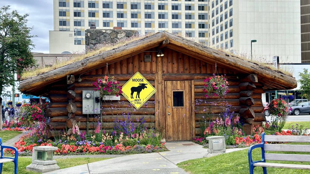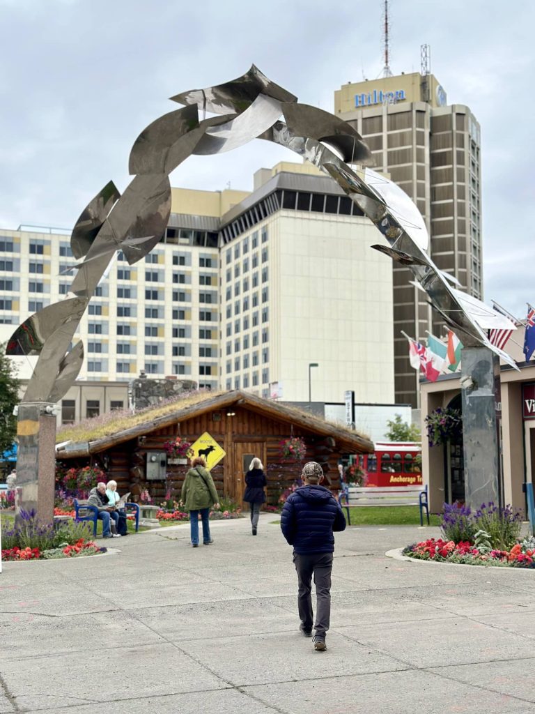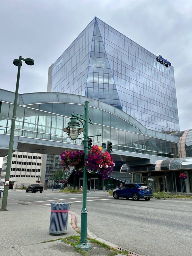 转过街角来到了Anchorage的菜市口,这里应该是整个阿拉斯加州最繁华的地点,游客服务问询中心就设在这里。我们刚准备进入,突然看见它的门上也贴着没厕所的布告!这时我们才认识到问题的严重性,今天可能要出大事!幸好有个世外高人指点迷津,建议我们去旁边的会议中心试试运气。