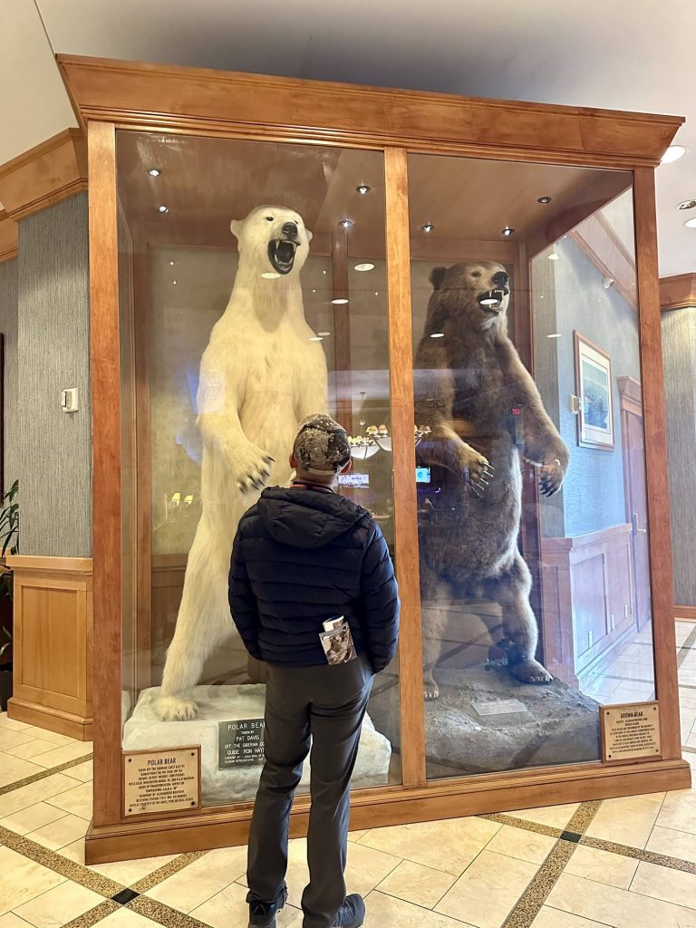 左上图就是著名的安克雷奇会议中心,右上图是安克雷奇希尔顿酒店大堂内的两头熊,可能好多人都在电视上见过。