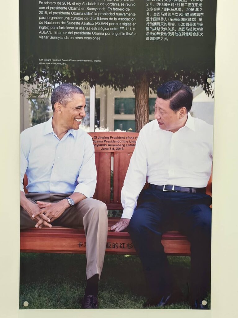大棕榈泉地区(Great Palm Springs)位于加州南部的沙漠里,但是却以众多高尔夫球场闻名于世。Sunnylands是其中很有名的一处,许多社会名流和政界要员都喜欢来这里猫冬,这里也被称为西部的戴维营。据说当年里根总统就是在这里突发奇想忽悠戈尔巴乔夫结束了冷战,奥巴马总统也曾在这里和习大大促膝谈心。